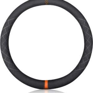 Leather Steering Wheel Cover, Premium Microfiber Leather Steering Wheel Wrap Men 14.5-15 inch Universal Breathable Car Steering Wheel Accessories Protector, Black