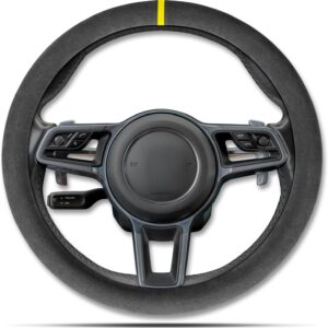 Sport Microfiber Suede Velvet Car Steering Wheel Cover Non-Slip Car Steering Wheel Protector Winter Warm Universal for Diameter 38cm(15") (Black)