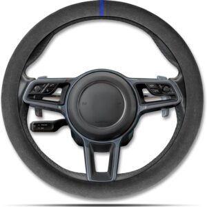 Sport Microfiber Suede Velvet Car Steering Wheel Cover Non-Slip Car Steering Wheel Protector Winter Warm Universal for Diameter 38cm(15") (Black Blue)