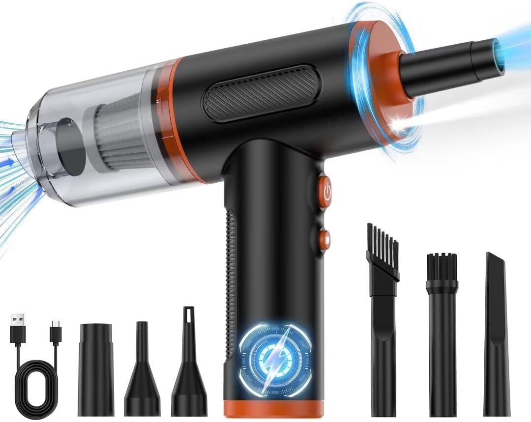 • 【Compressed Air Duster& Vacuum& Pump】 Beyond its dust-busting capabilities, this electric air duster & car vacuum cleaner kit serves multiple purposes—it also acts as an air blower and a hand pump. You can freely h according to your needs, not only cleaning but also inflating, a perfect helper for you.