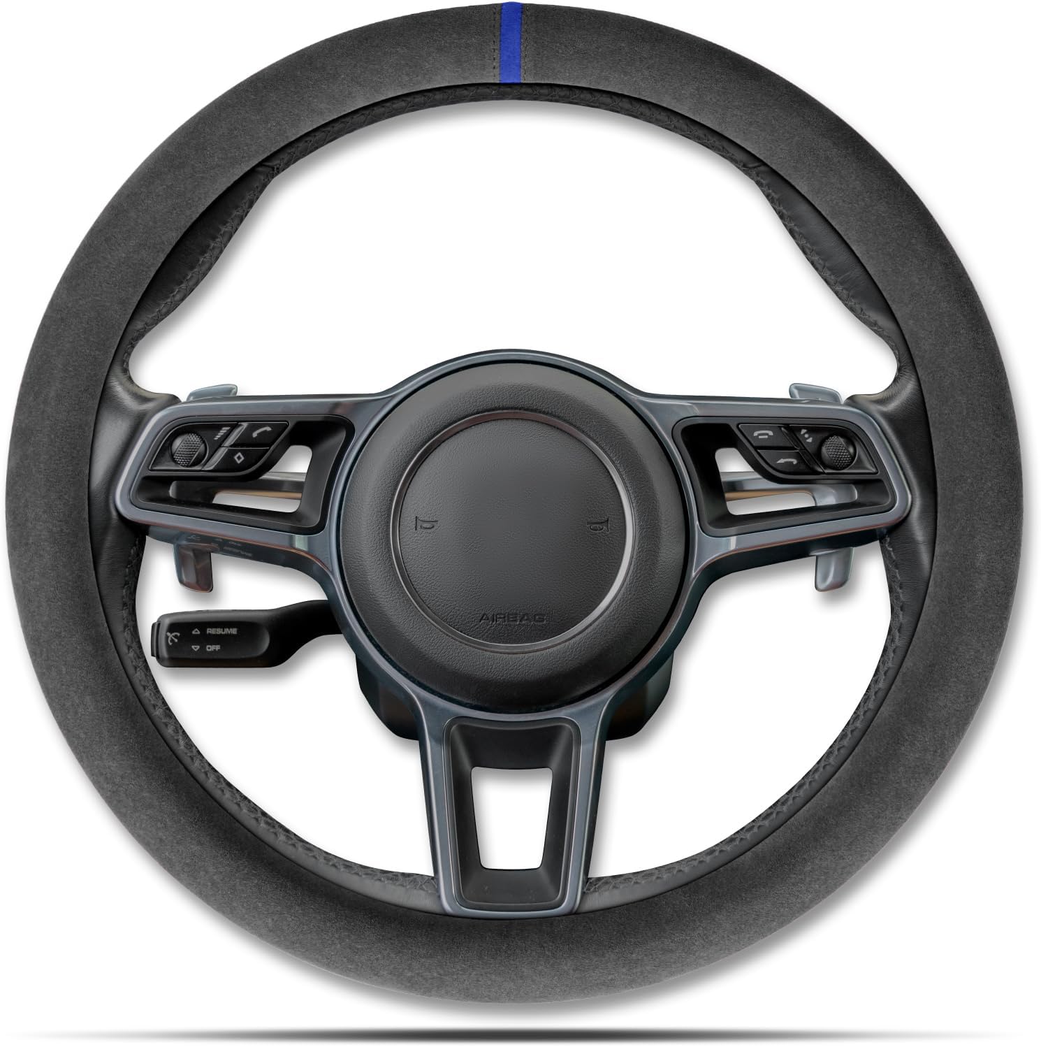 - Unique design: three styles and colors, this one is Black (Blue Mark)-Regular Style, bring you a better visual experience. Beautiful and sturdy packaging to safely ship the steering wheel cover to you.